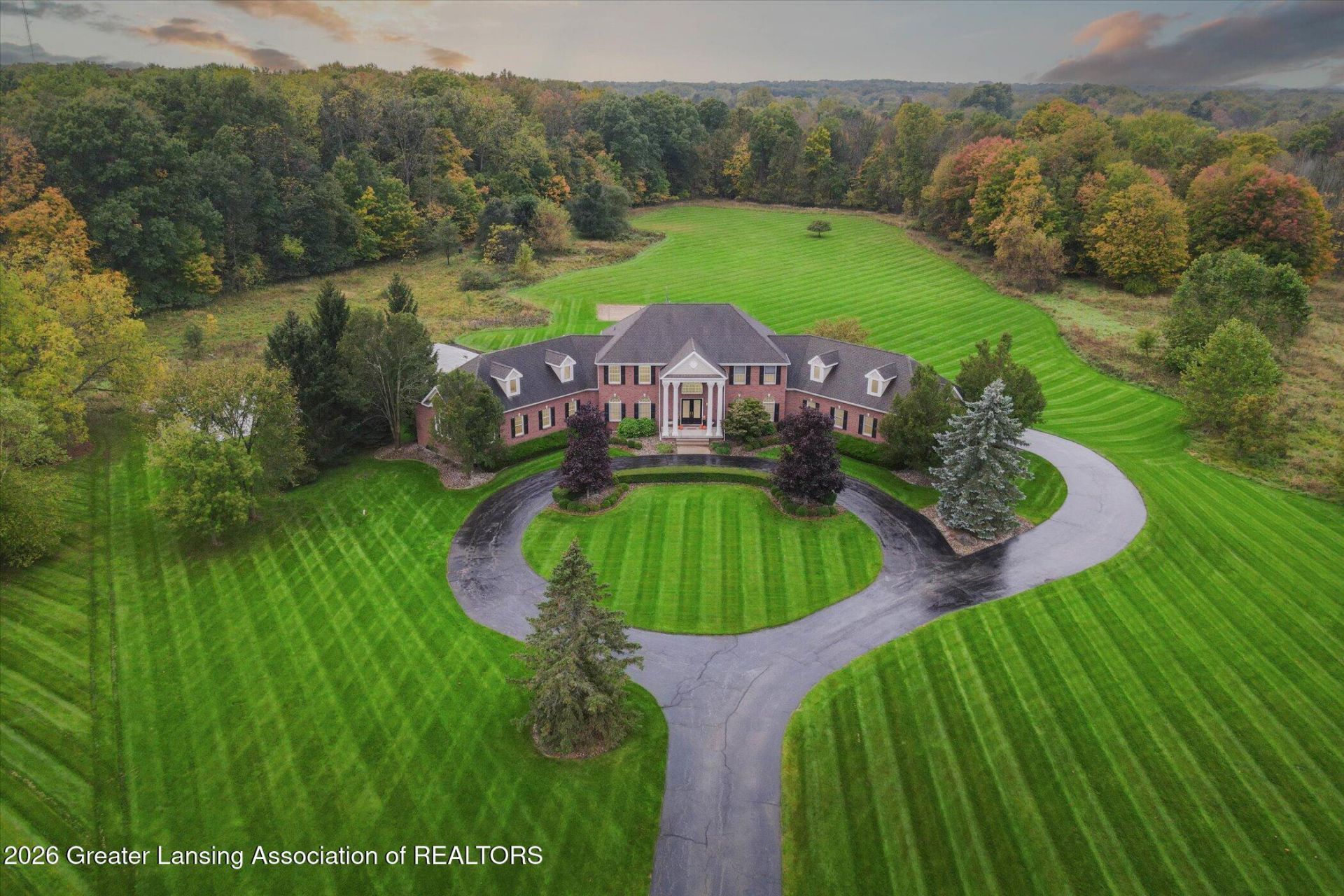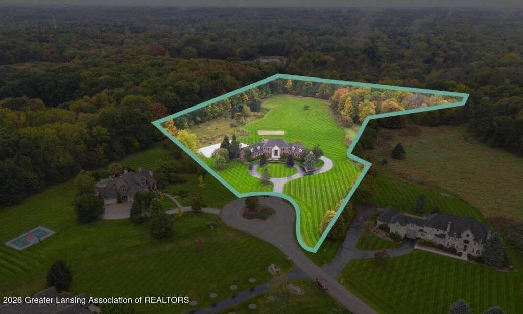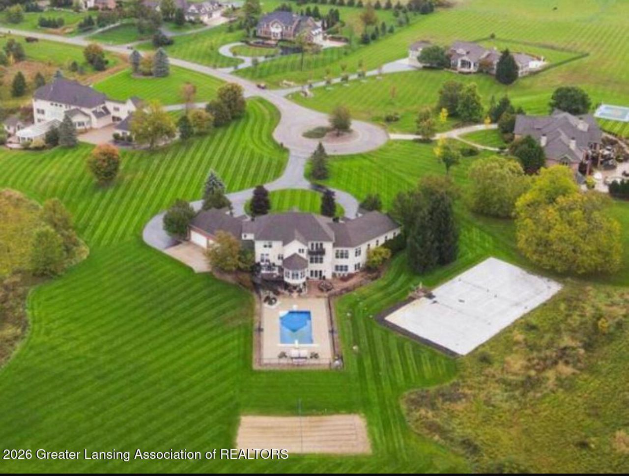 Welcome to 3919 Turnberry Ln! A luxury retreat nestled on over 7 acres in the prestigious Chimney Oaks subdivision, boasting unparalleled elegance and an array of amenities. This 6 bedroom, 8 bathroom home has been thoughtfully updated and designed to cater to your every need. As you enter the grand two-story foyer, you are welcomed by soaring ceilings and a stunning marble-like flooring that extends into the formal dining room, complemented by an upgraded staircase, designer chandeliers, and fresh interior paint throughout. The gourmet kitchen features modern finishes and updated appliances, you will notice a seamless flow between kitchen and living areas while incorporating expansive views of the property. The first floor offers a newly designed formal living room and a separate family living room, complete with a brand new fireplace providing the perfect balance of elegance and comfort. Additional first floor highlights include both eat-in and formal dining options, a large in-home office, a three seasons room with its own mini-split system, a half bath, and in-law quarters featuring an ensuite bath. The second level includes the luxurious primary suite complete with a spa bathroom and a private balcony overlooking the backyard. Three additional generously sized bedrooms, 2 full bathrooms, a large bonus room, a half bath, and a laundry room with hookups for up to 2 sets of washers/dryers round out the upper level. The spacious walkout lower level is an entertainers dream - featuring an upgraded home theater with projector and speakers, an adjacent wine cellar, full kitchen, living area, billiard room or den, two full bathrooms, a bedroom and an in-home sports court. Step outside to your own private resort. The fully updated sports field has been resurfaced and lined for multiple court configurations, complete with soccer goals, basketball hoops, a tennis net, surrounding fencing, and stadium-style lighting for night play. Add to that a saltwater pool, a brand-new hot tub, sand volleyball, and beautifully cleared and manicured grounds stretching to the back of the property. Major mechanical updates give buyers true peace of mind - including all 3 HVAC systems replaced, a new water heater, updated water filtration system, and a whole-home generator. New flooring has been installed on all three levels, with upgraded hardwood on the main floor and fresh carpet throughout. Plus so much more! The expansive 4-car garage ensures ample space for your vehicle collection and storage needs. A true serene oasis for relaxation and entertainment - just a short distance from MSU, shopping, restaurants, the highway system, and Williamston School District. Come experience it for yourself today!