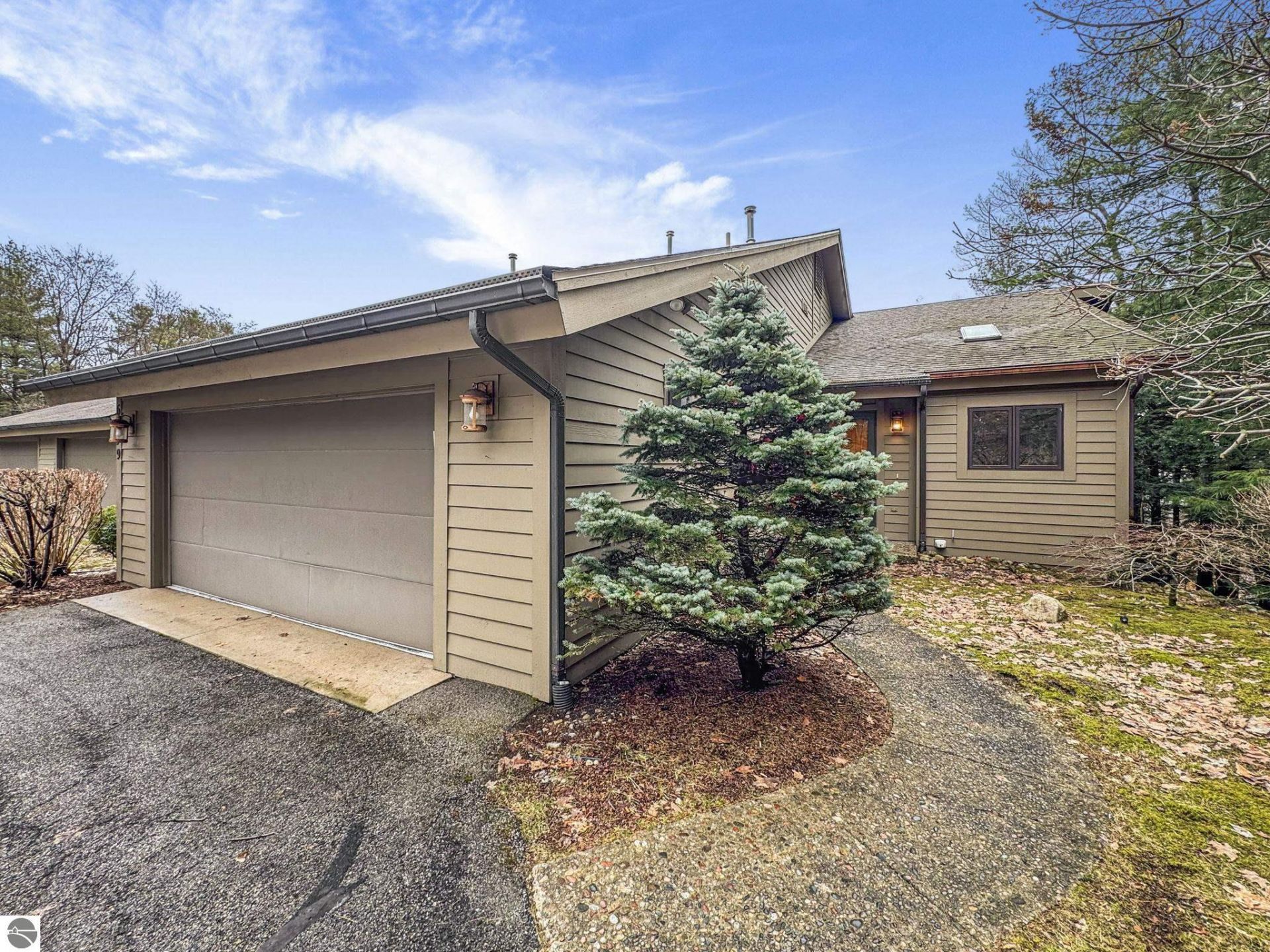 This spacious, end-unit condo in the highly sought-after Port of Old Mission development is the perfect blend of comfort, convenience, and pure NoMi delight. Enjoy seasonal bay views and year-round beauty, with the stunning surrounding hardwoods providing both privacy and a sense of solitude. This unit features many thoughtful finishes, including two gas fireplaces, built-in bookcases, Brazilian cherry flooring, endless storage, walk-in closets, and more. Vaulted ceilings and skylights bring the outdoors in, while updates throughout ensure longevity and peace of mind. Enjoy a remodeled kitchen that includes quartz countertops and backsplash, plus a newer deck, a heated lower level porch, and a recently replaced washer and dryer. An additional detached 1-car garage offers plenty of room for extra storage.